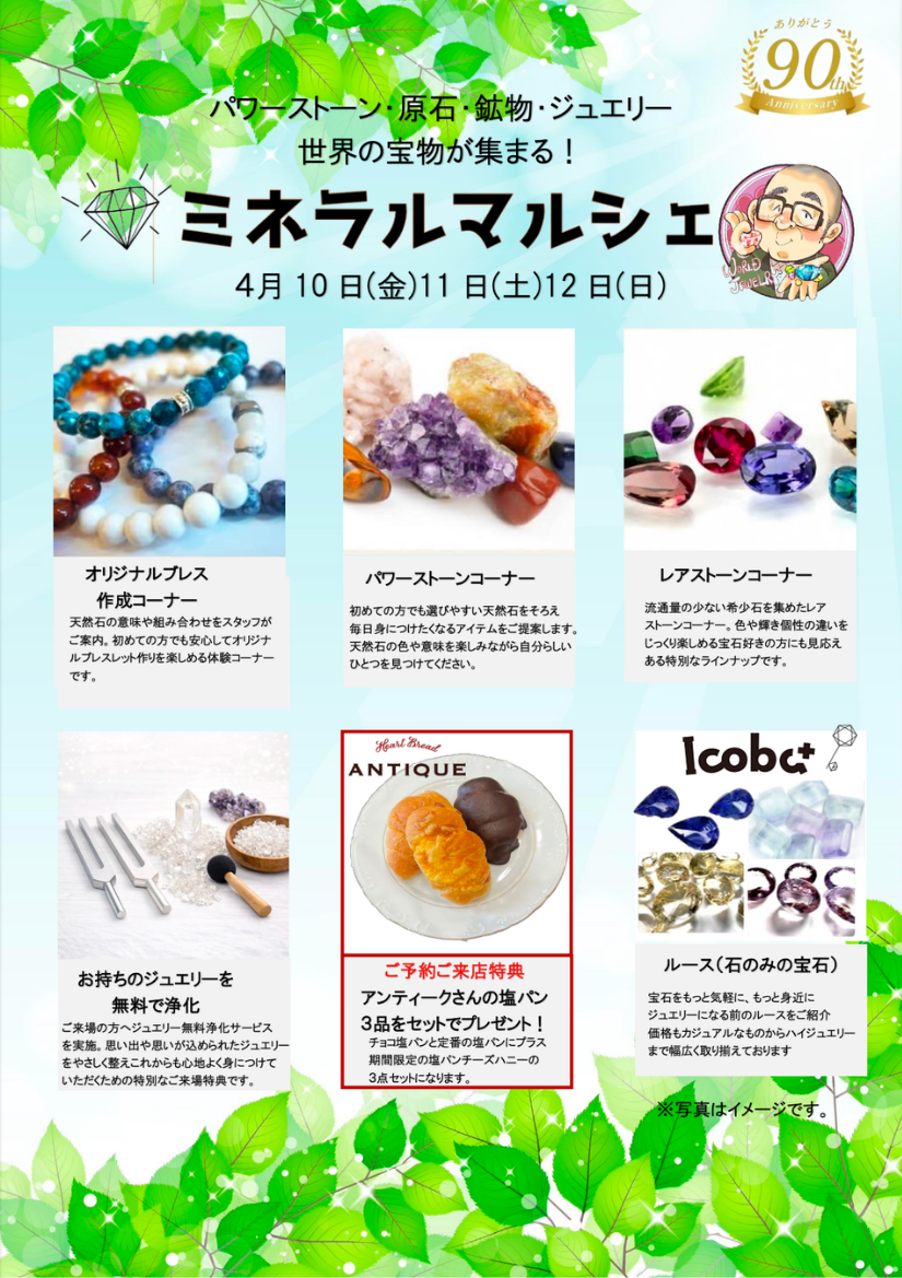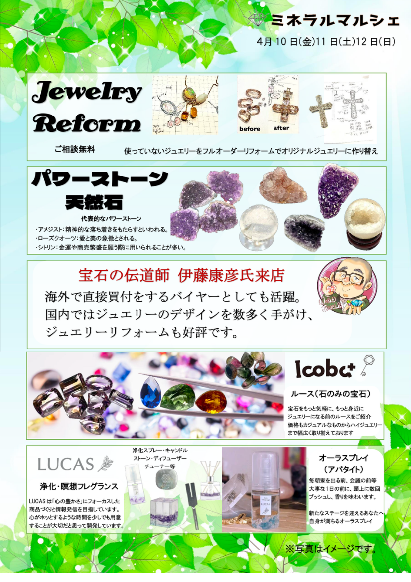 - 4月10日(金)〜 12日(日): ミネラルマルシェ開催(ヤナセ店内)