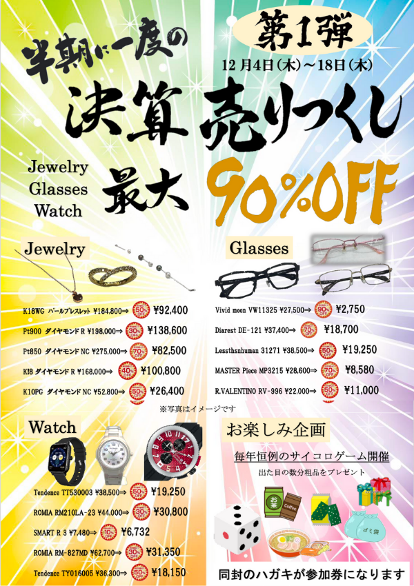12月4日(木)から18日(木)までの15日間、 「半期に一度の 決算売りつくし」を開催いたします!